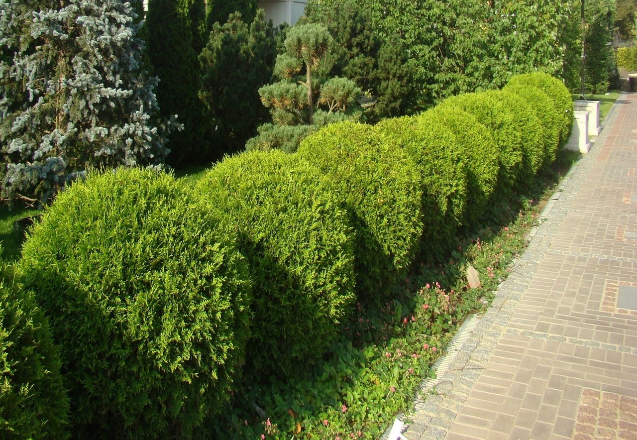 - Variétés adaptées aux coupes de cheveux. Les variétés qui se prêtent facilement à la topiaire sont sélectionnées: arborvitae occidental, tilleul à petites feuilles, irga, aubépine, genévrier commun, baies d'if, buis, troène. Ce n'est qu'alors que peuvent se former des silhouettes rectangulaires, carrées et sphériques qui font la renommée des jardins classiques.