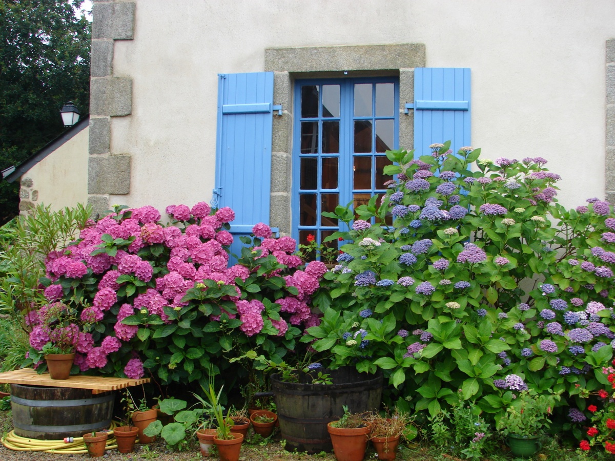 - Hortensia. En jardinage, les hortensias sont les plus recherchés - pas trop difficiles à entretenir, mais très beaux pendant la floraison. Les nuances des inflorescences sphériques sont très différentes. Du blanc et beige au lilas et bleu. De plus, la couleur dépend souvent de la composition du sol.